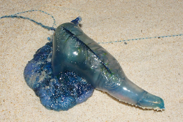 to Physalia utriculus it has a longer anterior projection on the float. This